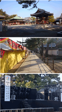 弘法大師誕生の地、善通寺は広大な敷地で西院、東院に別れています。 6時の勤行から始まり、出発準備をして、まずはこの善通寺から納経です。 昨日、駐車場に自転車を停めて直接宿坊に入った為、納経をしていませんでした。境内を歩くと、本当に広いです。金堂(本堂)から御影堂(大師堂)まで納経し、いろいろ見てまわりました。 境内を掃除している人が他のお寺と比べ物にならないくらい大勢です。 そしてなんとこの日の夜、この善通寺境内でAKB48のライブが行われるとのことで、その設営がされていました。 朝の勤行で、住職が法話でも触れていましたが、「なんとかしじゅうはちとか言うグループが~」と。 せっかく初めて善通寺に来たんだから普段の静寂な雰囲気を味わいたかったなぁ、と思いました。 |
