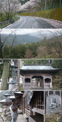 昨夜の植村旅館では、愛知県春日井市から来た37歳の男性と相部屋となり、宿のことなど教えていただきました! 夕食時には、日本在住で岩手県から来たオランダ人の女性と、アルゼンチンから来た男性、そして 80歳の男性、さらに4回目のお遍路で逆うちしている女性と夕飯を供にしました。 焼山寺は半端じゃない。 朝から小雨が降っていたが、宿で荷物を預かってくれると言うことで、リュックサックだけを背負い焼山寺を目指した。宿から出て、途中までは快調に走ったが、途中からとても自転車をこいで登ることは出来ず、自転車を押しながら、何とか到着。 嬉しかった~! 苦労して登って来た分嬉しさ倍増でした。 お寺に着いた時に昨日お会いした車で廻っている北海道から来られたと言う御夫婦とお会いました。 「ここまで自転車で上がってきたの」と非常にビックリされていました。 確かに私の足もパンパン状態でした。 その方々から「今お寺さん言ったら参拝者は君だけだよ」と言われ、本堂・大師堂にお参りし、納経帳に記載してもらい、ちょっと休憩。 |