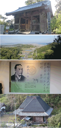 さすがに夕方になると寒い。 上着を着て、ホテルに向かおうと山を下って、自転車をこいでいると「武市端生 生家」と言う看板を見て、17時を過ぎていたがついつい見に行った。家には「坂本」と表札がかかっていた。あれ?と思いながら、お墓とミュージアムへ行ったがミュージアムは既に閉まっていた。お墓は、半平太の手前に奥様の富子さんの墓石がありました。やはり、できる男を支えているのは「今も変わらず妻なんだな。」っと思いました。 お線香をあげて帰ろうとした、私と同じくらいの女性がミュージアムの前にある広場の掃除をしていた。話しかけて、半平太や富子さんなどについてお話していたら、「お遍路さんでしょ?」と言われ、和菓子をくださいました。御礼を言って納札を渡し、宿に向かった。 高知市内にはりまや橋の近くに予約していた宿には、1時間近くかかって到着。 |