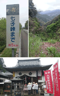 それから、七子峠に向かいました。そんなに急ではないのですが、だらだらとした坂が約10キロ近く続いていました。 しかし、山の上から観る景色は最高でした。 ちょうど峠に着いた時に雨が降りだし、雨ガッパを着て再スタートしました。 最初、霧雨だった雨も、岩本寺に着いた頃には、大雨になっていました。 お参りを済ませた後、この旅で始めての宿坊に泊まりました。 三人一部屋の相部屋で、逆打ちしている大阪の方々と一緒になりました。そこでは、あの宿が良い。あの宿は布団がじめっとしていたなど、色々な経験談を聴かせていただきました。 お風呂は足を伸ばせるし、夕食もかなりのボリュームがありました。 宿坊に、泊まるのも面白いなと感じました。 |