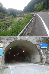 朝から小雨。しかも、さー行くぞ。っと思ったら後輪がパンクしている。 本社に電話してタイヤチューブの替え方を教えていただきながら作業し、時間はかかったが何とか交換。気を取り戻して再スタート。 出発時間が遅れたことで、気持ちの中で、「次のお寺まで約80キロ。もしかしたら、今日は一回も参拝出来ないかもしれない…」という気持ちもどこかにありました。 大洲市を過ぎ内子町を過ぎ、走っているとチェーンが2回も外れ、その度に自転車を止めて直しました。 山に向かって走りだし真弓トンネル(山頂)まで約8キロで、標高600m弱を上がります。だらだらと長い登りが続く。足の筋肉はパンパン、膝はまたまた痛くなり、それでも山頂を目指し真弓トンネルが見えた時には本当に嬉しかったです。 |