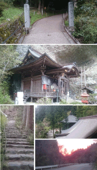 真弓トンネルを越えるとお寺のある久万高原町に入ります。 45番札所の岩屋寺までは約20キロ。 その20キロは最後の力を振り絞り走り続けました。 岩屋寺は、駐車場から山を上にあがります。看板には、「徒歩20分」と書かれている。しかし時間がない。 山を猛ダッシュで走りながら、足が壊れても何とか間に合わせたい。という気持ちとともに、境内に入った時には、息がきれ、これまで感じたことのない疲れが身体を襲いました。 これが限界。そして修行。何とか17寺までに参拝する事が出来ました。 本当にきつい。 そして、夕方になったせいもあるのか、今度は汗が冷えてとても寒くなりました。 下山し、宿までは約5.5キロ。流石に体力が持たず、坂を自転車をこいであがる力は残っていませんでした。今日は本当に疲れました。 |