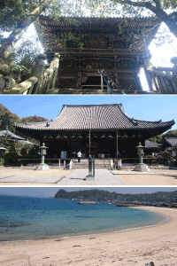 今日も良い天気です。 朝、露天風呂に入り、朝食を食べてから、出発です。 今日最初に寄った52番札所太山寺は、山門をくぐってから約300m位のところにあり、最後に階段を上がるとお寺があります。特に変わったお寺ではないが、松山市内に近いのにとても静かな場所にありました。 太山寺から圓明寺までは、自転車で約10分。平坦な道であっという間に到着しまた。 参拝を済ませ、これから次の延命寺までは海沿いを40キロくらい走ります。 始めは綺麗な海を見ながら走っていましたが、毎日の疲れからかペースもあがらず、休憩を繰り返したため、予定の時間を大巾に遅れて延命寺に到着しました。 |