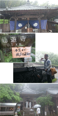 今日は朝起きた時から雨。 一日中雨の予報が出ています。 テンションが下がります。 これも修行と自転車をこぎ出しました。 本日は57番札所 栄福寺からのスタートです。栄福寺に着いた頃には、雨も強くなっていて、びしょ濡れの中で参拝しました。 次の仙遊寺は小高い山の上にあるお寺のため、自転車を押して坂を上がっていたところ、屋根付きの休憩所が合ったため休憩していると、歩きお遍路さんも入ってこられて、少しお話しました。 そろそろ行こうかなっと思っていたら、自転車で坂を上がっていく女性が見えました。「凄いなー!」っと思い見ていたら、50mくらい上がった所に門があり、自動車道と遍路道が分岐していた。 私も自転車で追いつき、女性とお話をしたら、有給休暇を取ってきており、しかも東京の23区在住と言う。 一緒に自転車を置かせていただき、お話をしながら遍路道を上がり仙遊寺に到着。参拝中も凄い雨。お寺でちょっと話をしていても吐く息が白い。 |