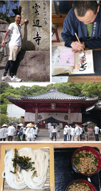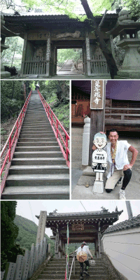 昼食後、弥谷寺を参拝。 このお寺は、駐車場に着いてから500段以上の階段を登る。 食後直ぐにはちょっときつい。太子堂は、靴を脱いで参拝すると言う始めてのケース。 次の、曼荼羅寺・出釈迦寺・甲山寺は、近いのでパパっと参拝し、本日の宿である善通寺へ。 善通寺に着いた頃から雨が降りだしたので、参拝は明日にして宿坊へ直行しました。 部屋は7畳。テレビはない。部屋の鍵はない。しかし、建物も綺麗で風呂も大きい。洗濯も無料。食事も美味しい。 最高の宿です。 一日遠藤さんに付いて走り、だいたい一定のスピードで走る自転車になれている人と走ると物凄く走りやすかった。 また、一人では途中で諦めてしまっていたかもしれない所も遠藤さんのお陰で頑張れたと感謝しています。 ありがとう、遠藤さん。 |