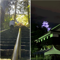青龍寺へ行く道中、大師の泉を発見ここで少し休憩、景色を楽しみながら青龍寺へ、ここは朝青龍関が鍛錬を重ねた事でも有名・・・ もちろんダッシュしました! 普段出張でよく高知県に来ているのでそこを自転車で走っている違和感を感じながら今夜も高知市内に戻る! 高知城がなんとも言えない色で照らされていた。 明日は出張中では、なかなか見れない日曜市に少し寄って、岩本寺を目指します。 |