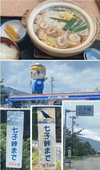 さてまずは須崎市を目指す! 鍋焼ラーメンの有名店に行こうと思ってましたが、さすが連休!朝から行列が・・・ 仕方なく諦め、またの機会に。 道の駅により休憩中、鍋焼きラーメンを発見!食べる!外は暑いけどうまい! 回復し、横にあるローソンのしんじょう君に見つめられながら進む! そして来た、七子峠! 地味な登りが続く、確かにこの残り何キロの表記つらい。。 日差しがキツイ、たまにあるトンネルが涼しすぎ出たくない! そんな事を繰り返しながらなんとか到着、すぐそばにある自販機で飲み物を買い進む、また道の駅がありソフトクリームを食べながらお遍路さんいるかな?と周りを見渡すがいない。 暑いし仕方がないのかな。 |