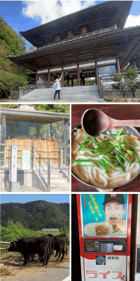 ここからずっと上り坂が続きます。 ミニミニ高野山と思い、練習でできるだけ休憩せずに行ってみようと思い進みます。涼しさもありそのまま登りきりました。 見えてきた大窪の山門、デカい! 四国最後には素晴らしい所でした。 沢山の金剛杖が奉納されており、終わりなんだなと改めて実感。仁木さんおすすめの八十八庵さんで打ち込みうどんをいただきました。あつあつで本当に美味しかった。 1番霊山寺へ御礼参りに向かうため下山。 途中、牛さんの真横を通り再び徳島県へ!10番寺切幡寺周辺などを懐かしく感じながら通る。 こんな自販機を発見。こんなのがあるんだと気になったがうどんでお腹いっぱいなので写真だけ。見て面白い物があるのに気付いていない以前の自分。 周るのに必死過ぎていたのが今分かる。 ある意味一番成長した事を感じれるのはここかもしれない。当初来た時は、あたふたしていた自分と今の自分を比べられる。 |
