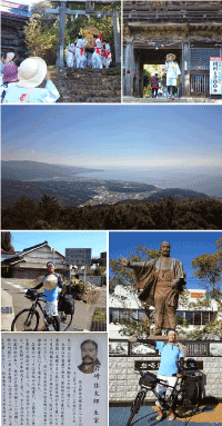 今日は神峯神社の年に1度のお祭りで、神輿を担いで一気に下りてくるとか。 長い坂道だったので、ゆっくり登ると、タイミングよく神輿とも出会えました! 自転車を置いて、神峯寺の巡礼を済ませ、その上の神峯神社にも詣り、さらにその上の空と海の展望台へ向かった。 険しい山道の先には… 360度見渡せる、最高の景色! 美園さんに行けと言われ、行って良かったなぁ。