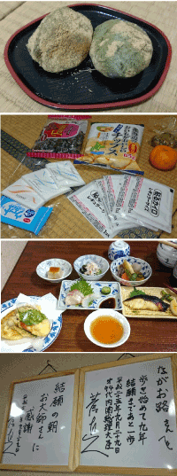 そのあとお経を読ませていただき、六車さんともお別れ。 寒くなるからとカイロ、鼻水出るからとティッシュ。甘い御菓子、八栗寺で待ってる間にヨモギ饅頭を買ってくれた。 六車さんとのきっかけは、観音寺で六車さんの納札がなくなり、納経所にも売ってないので、自分のをお分けしたのが始まり。井戸寺も一緒になり、そこでも納札をお分けして、自分の父親と名前が同じなど色々話して気が合い、香川で会おうということになり楽しみにしていた。 極めつけが、新品の納め札が入っていて、残ったら次の研修の方にと。 すべてのものにお気持ちが入っていた。 色々やってもらいすぎて申し訳なかったけど、楽しかったと言われ、別れがつらかった。 もう暗くなるからと、お別れしました。 とても親切に道を教えてくださる旦那さま、笑顔が素敵で、本当に優しく気持ちのある奥様、感謝しています。 そして長尾寺へ。 すると、ものすごい大雨に。 荷物にカバーをかぶせ、後はどんなに雨が降ろうと全く気にならず、涙の雨かなー?心を洗ってくれてるのかなー?なんて思いながら走った。 確実に鍛えられている。 ながお路へ到着。 ビショビショだったのに、またご主人が優しいこと。 雨で濡れたにも関わらず、全く気にせずに親切に対応していただいた。 |