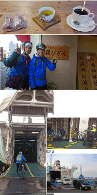そして、フェリーは8時出発なので、あまり時間はないけど、コーヒーもいただき、出発の準備。 御接待にいなり寿司をいただいた。
