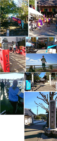 35番清滝寺も険しいよとアドバイスをいただいたが、「今なら行ける!」と心では思った。でも、険しかった。地元の方が言うのだから当たり前だが。道中、菊のスカイツリーが綺麗に立っており、目を奪われる。 清滝寺を打ち終わると16時。今日は次の36番青龍寺の近くの宿。17時に間に合えば行くつもりで出発。 15キロぐらいはあっただろうか?アップダウンも少々あるが、結局間に合わそうと必死に走る自分がいた。 海を渡る橋の上で自転車に乗るおじいちゃんから「がんばれ~!」と声を掛けられ、一層力が入る。 こんなに必死になったのは初めてだった。青龍寺に着いたのは16時40分。何とか間に合った達成感はハンパない。 だが、目の前に立ちはだかるのは、朝青龍が特訓したという青龍寺の階段。 小原さんがかけ上がったと言っていたので、自分もやるしかないっ! 最後の力を振り絞り、本堂までかけ上がると、さすがに足はフラフラに。 それにしても高知は少し高台にあるお寺が多い。距離も長い。さすが修業の道場。明日からは足摺岬への長距離修業が待ち構えている。 |