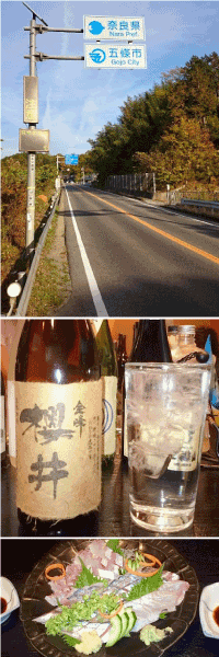 お腹も満たし、ひたすら国道24号線を走る。 すぐに奈良県との県境へ。 五條市に入り、少し安心。 自分は奈良出身なので、ここまでくれば後の道のりはわかるし、時間も読める。 五條市から御所市に入る峠さえ越えれば、あとは平坦なハズ。 小原さんに「あと少しです!」と声を掛ける。 案の定、御所市に入ってからの道のりはかなり楽で、大和高田市に突入。 懐かしい。出身高校がこの大和高田市にある。 よく行ったカラオケ、ゲーセン、王将、ガスト、吉野家・・・まだまだそのまんま残っていた。 思い出に浸りながら、橿原市から田原本町、天理市と順調に通過。 最近、国道24号線が新しくなったが、旧道の方が走りやすいと思い、自分が先頭で小原さんに後を付いて来てもらった。 学生の時は夜な夜な車で走っていた道を今は自転車で走っている。 何とも感慨深い。 大和郡山市に入る頃には辺りも暗くなって来た。 しかし、ここまで来ればもう少し。 思っていた以上に奈良の道は走りやすく、予定よりも早くホテルに到着。 洗濯と風呂だけ先に済まし、夕食を食べに久々の奈良・三条通りへ。 ここもかなり懐かしい。 けど、昔より綺麗になっている。 そういえばJR奈良駅周辺もかなり綺麗になっていた。 少し歳を感じた瞬間。 ホテルのお姉さんオススメの居酒屋で、自分と同じ名前の焼酎・金峰櫻井を飲みながら、懐かしすぎる奈良の夜は更けていく。 |
