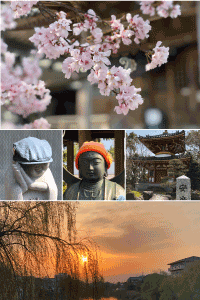 巡礼中、その見るもの全てが新鮮で、ついつい楽しんでしまうことも。 道中、何回か桜を見かけることがありましたが、6番安楽寺では大師堂前の桜は見事でした!綺麗に色づいた桜が咲いていて、お寺ともとてもマッチしていて感動してしまいました。何度も写真をとりましたが、納得の一枚は撮れず。 7番十楽寺の納経所前には気になるものが。 ハンチング帽を被ったお地蔵様が立っていました。 9番法輪寺ではニット帽を被った大小様々の仏像が! 住職さんに伺ってみると、「これは参拝者の方が御心遣いで被せてくれている」とのこと。 これを被せていった方の心の温かさが伝わり、見ていて心が癒されました! さて、明日はお遍路ころがしの焼山寺! 入念にストレッチして備えます。 |
