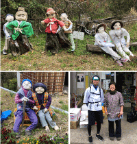 山を下っていくと、存在感のあるかかしが急に出てきた。 雨で体が冷えてしまったので、お店に入ってコーヒーをいただく。 お店のお母さんに話を聞くと、かかしは神山の町起こしで始めたことで地元のお母様方が作っているとのこと。 町内には色々なところに、映画の1シーンを切り取ったかのような展示がされていた。 「せこい」(=疲れたの意)という方言を教えていただき焼山寺を目指す。 |