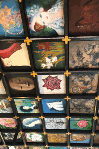 今日はまず、昨日間に合わなかった37番岩本寺に行くために10㎞程戻ります。 昨日の七子峠の影響なのか、久しぶりに身体中の筋肉痛が痛い。 岩本寺までは、急坂はなく緩やかな坂道が続きます。 岩本寺に着いて、本堂の天井を見に行きました。 天井に広がる575枚の天井画は圧巻。 てっきり仏教に関する画が並んでいると思っていたら、動物や西洋の方の人物画など様々な種類の画が。 聞くところによると、この中にはマリリン・モンローの肖像画もあるというから驚き! これらは、昭和53年の新築のときに全国から公募した画なんだそうです。 ついつい天井画に夢中になり、しばらく納経を忘れてしまいました。 |