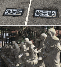 四国霊場で最も標高の高い66番雲辺寺。 その高さからの眺めも良かったですが、最初に驚いたのがもう香川県に入ってる!必死で自転車をこいでいたので、県をまたいでいたことに気づきませんでした。 そして、ロープウェイの山頂乗り場付近に香川県と徳島県の県境を示すプレートを発見。徳島県もすぐそこでした。 本堂へ向かう途中にあった五百羅漢像は迫力ありました。 色々な仕草・表情をした像が並んでいて、自分に似ている像が1体はあるそうで少し探してみました。・・・が、残念ながら見つかりませんでした。 |