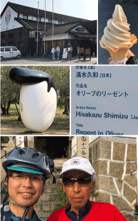 山を下り町中のお寺をまわります。 途中に、マルキン醤油記念館を発見。 小豆島はオリーブだけではなく、醤油も有名なんですね。 売店で醤油ソフトを注文したのですが、想像以上に食べやすく美味しかったです。 醤油の香りがする町中を走り、札所を巡ります。 11番観音堂の前では、お寺を管理している方に出会いこれからの道順や宿情報を教えていただきました。 その方はボランティアで、観光誘致の為に広報活動をしたり、無償でお遍路さんを家に泊めたりと色々なことをされていて、僕にもたくさんの資料をいただきました。 そして、宿に向かいながら札所を数ヶ所まわり今日は終了です。 今日はブログには書いているもの以外にもたくさんの出会いがあった1日でした。 |