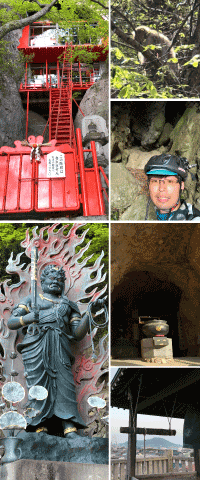 33番長勝寺では納経所の方々がとても親切にしてくださり、お参り後に昆布茶をご馳走になりながら30分くらい話し込んでしまいました。 境内もとても綺麗に整備されていて、見ごたえがありました。 そこから近辺のお寺をまわり、本日最大の難所へ。 寒霞渓に3つの山岳霊場があり、誰に聞いても自転車は厳しいと思うと言われてました。ですが、四国の遍路ころがしを経験してきたおかげで、何とか無事登りきることができました。 20番清見寺、18番石門堂、14番清瀧山。 どれも森の中、洞窟の中にあり、まさに異空間。参拝者が僕一人だったので、存分に境内の異空間に浸ることができました。 そして、14番清瀧山にも鎖行場が。 もちろん登りました! 鎖をたぐって登っていくのですが、途中から横方向に鎖があり水平移動。 その後は鎖はなくなり、ロッククライミングのように登っていくと頂上に。不動明王があり、そこからの景色は絶景。 降りて戻るのがめちゃめちゃ怖かったです。 予定よりも寒霞渓の3つのお寺で時間を使ってしまったため、残りは明日に持ち越し。 いよいよ明日は小豆島結願です。 |