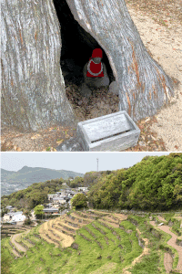 44番湯船山は杉中矢久興家地蔵といって杉の大木の割れ目を覗くと、中にはなんとお地蔵様が一体祀られています。 さらにお寺の前からは中山千枚田が一望できました。 夏に来たら田んぼに水が張っていて、もっときれいだろうな。 43番浄土寺では、お寺の前に掲示されていた「百人に微笑みかければ百人の心が和む」という言葉を見て、小豆島に来てから出会った方々を思い出す。 皆さんこちらから声をかける前に、「どこお探しですか?」とか「自転車で走って疲れてないかい?」と笑顔で声をかけて下さって、たくさん助けていただきました。 僕も誰かを和ませられるように、体と心に余裕を持ち、いつでも微笑むことができる人間でありたいと強く思いました。 |